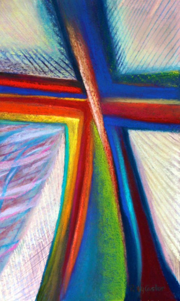 This abstracted cross– bright in hue, backed by light– is the first of a series.